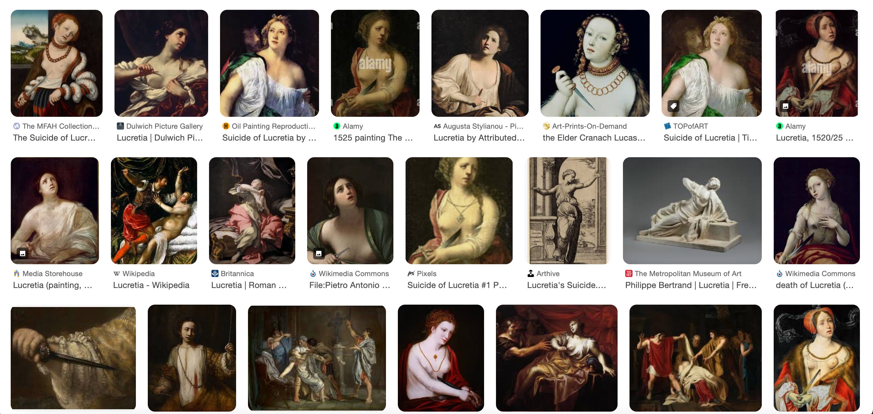 Contrasting the beauty of Mary’s story and the tragedy of Lucretia’s, I can imagine a reading rooted in the logic virtue and vice: that Mary’s concerns the preservation of virginity, and Lucretia’s, its desecration; that the will in the first is holy, and in the second, base. That is why Mary must assent to power’s purpose for her womb, and Lucretia, refuse it. But there is also a reading, I guess what I might call a feminist one, attentive to authority’s operation in both instances via threat: Mary cedes, and lives—Lucretia dies to refuse, or refuses and therefore dies. There is no otherwise.